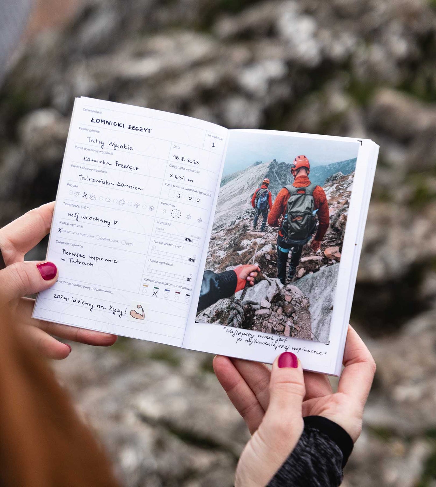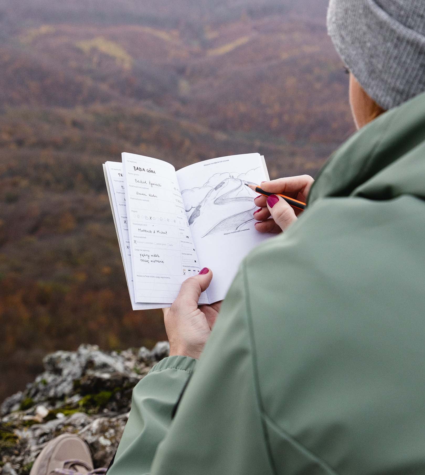 do zanotowania każdej wędrówki z miejscem na rysunek, zdjęcie lub pieczątkę
