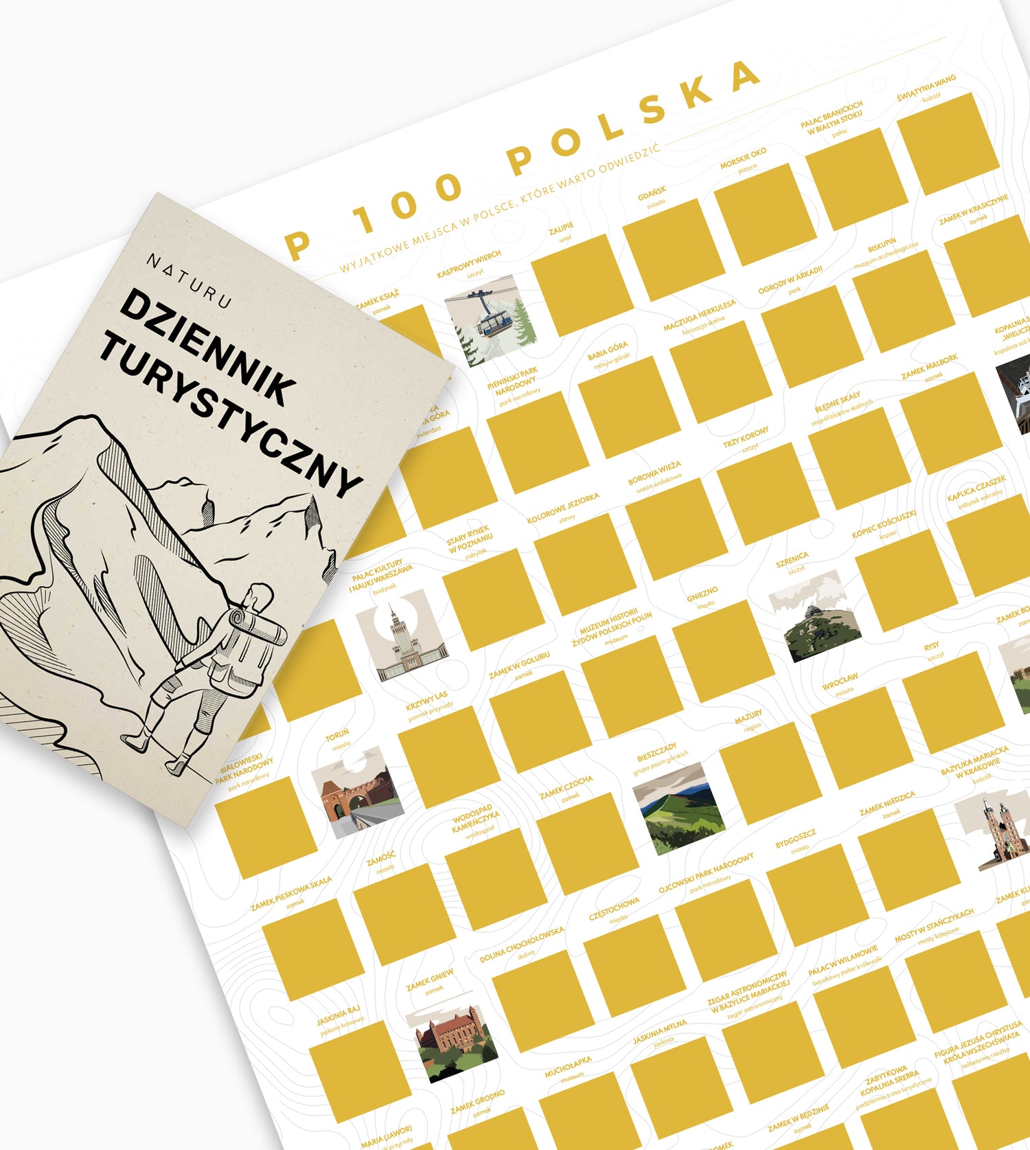 Ten wyjątkowy zestaw łączy dwa bestsellerowe produkty, które zdobyły uznanie setek zadowolonych klientów. Dziennik Turystyczny pozwoli Ci szczegółowo zapisywać wspomnienia z podróży, zbierać pieczątki i utrwalać najcenniejsze chwile z wyjazdów. Zdrapka TOP 100 Polska zaprowadzi Cię do najpiękniejszych miejsc w kraju – zarówno tych przyrodniczych, jak i architektonicznych – a każde odwiedzone miejsce będziesz mógł stopniowo odkrywać.